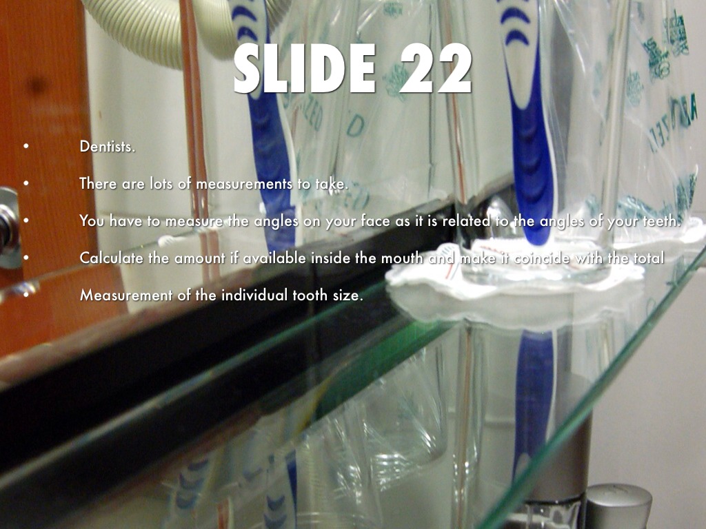 You have to measure the angles on your face as it is related to the angles of your teeth.