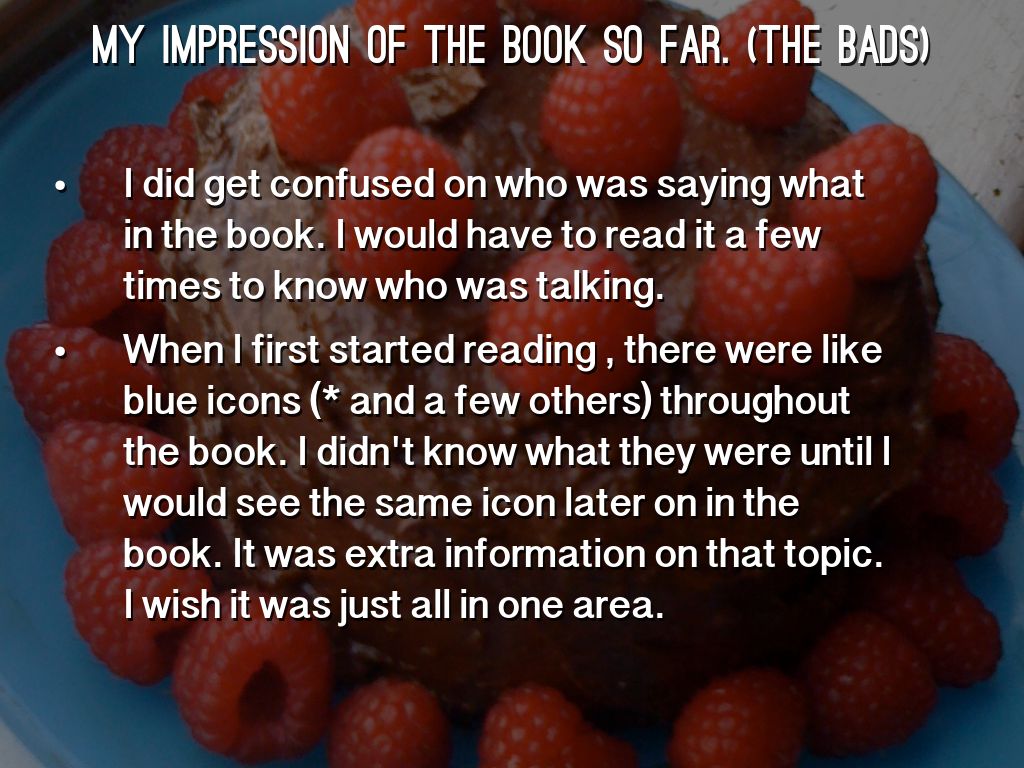 I did get confused on who was saying what in the book. I would have to read it a few times to know who was talking.