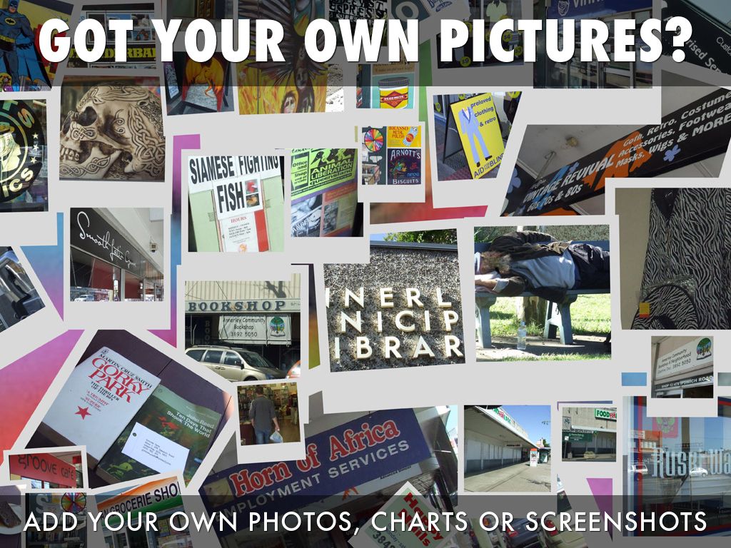 ADD YOUR OWN PHOTOS, CHARTS OR SCREENSHOTS