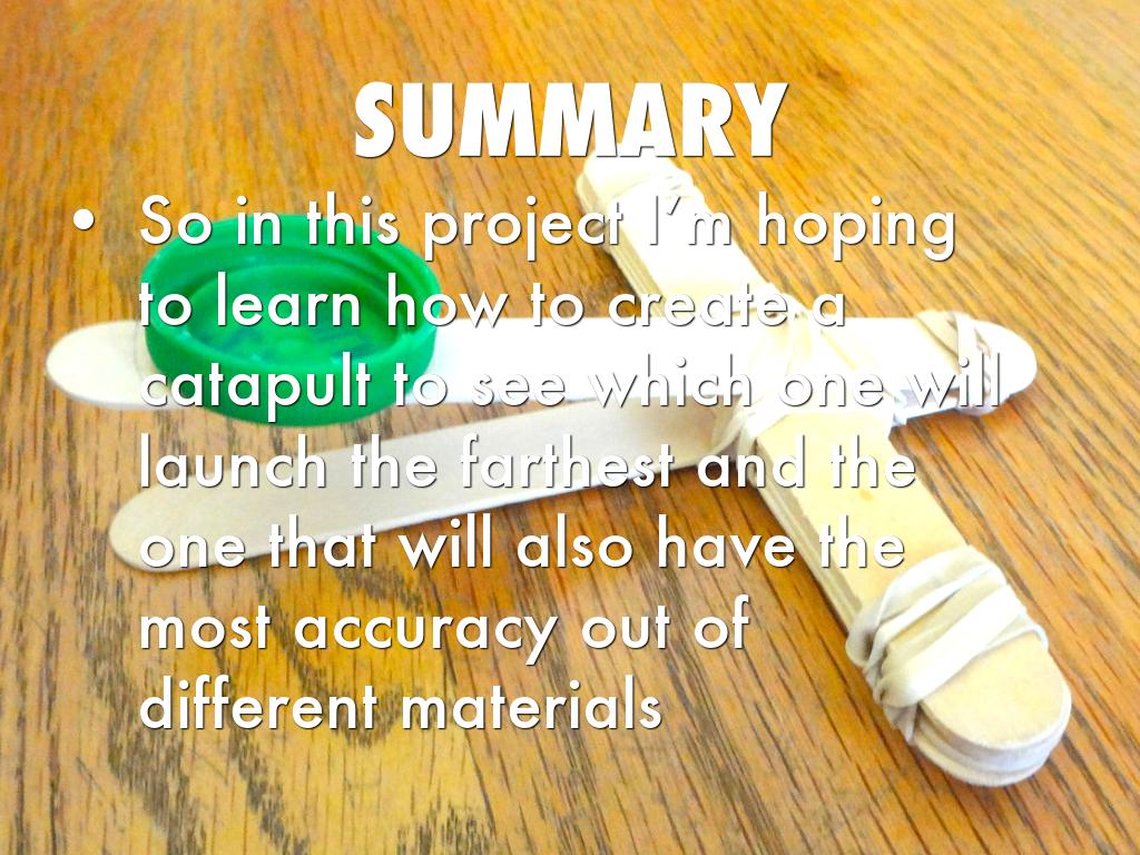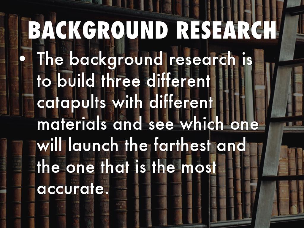 The background research is to build three different catapults with different materials and see which one will launch the farthest and the one that is the most accurate.