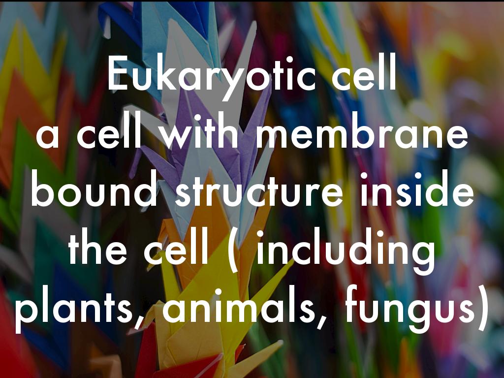a cell with membrane bound structure inside the cell ( including plants, animals, fungus)