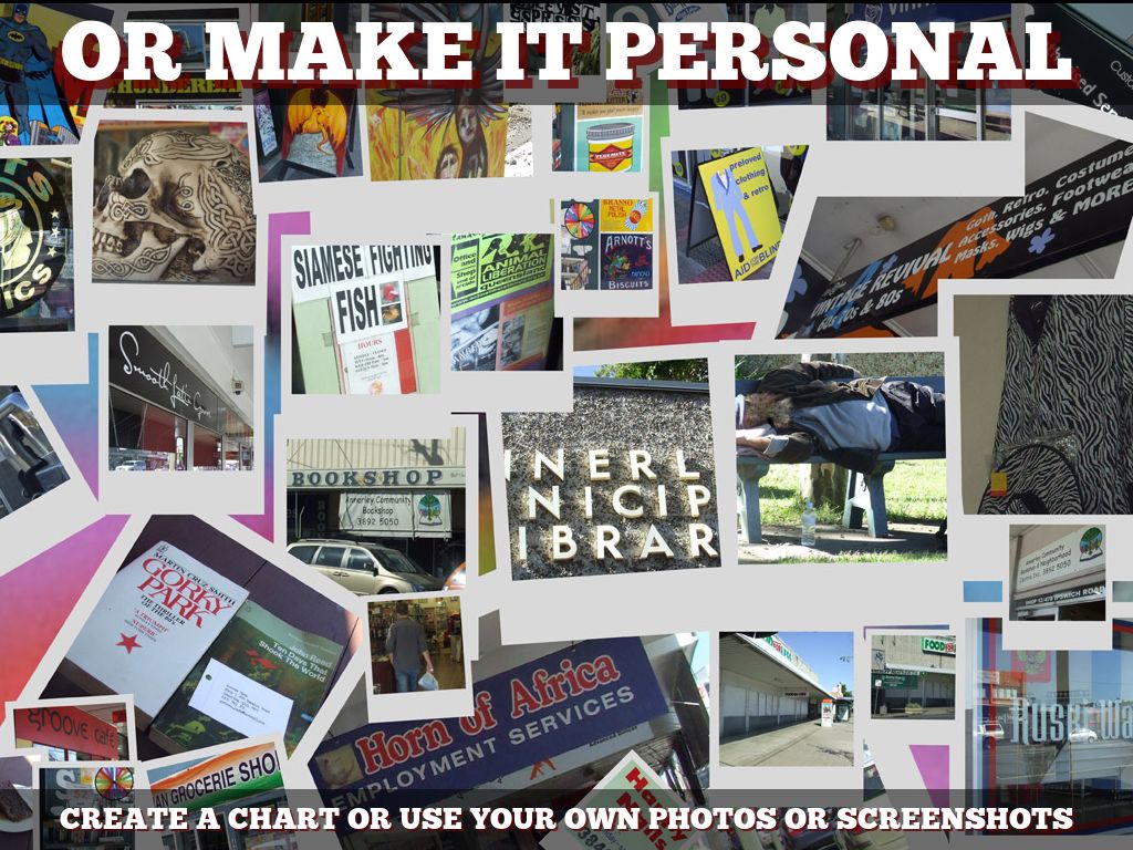 CREATE A CHART OR USE YOUR OWN PHOTOS OR SCREENSHOTS