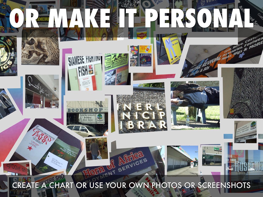 CREATE A CHART OR USE YOUR OWN PHOTOS OR SCREENSHOTS