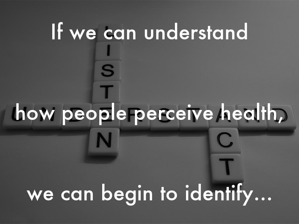 This is a research study designed to understand how people perceive "health," and the ways in which they define health. The goal of the "What is Health?" study is to gather data on health perceptions in order to identify gaps in these views. In doing so, it will be possible to develop programming to better meet the health needs of the general public.
