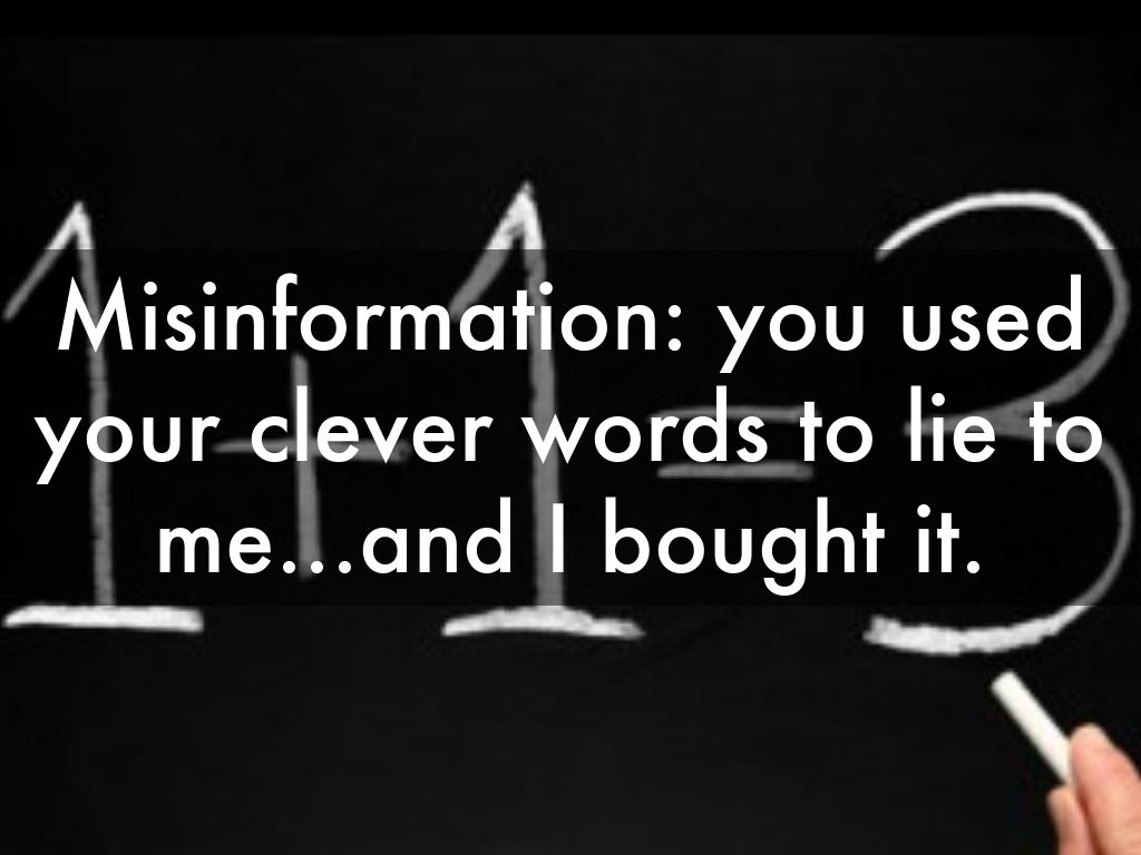 Misinformation: you used your clever words to lie to me...and I bought it.