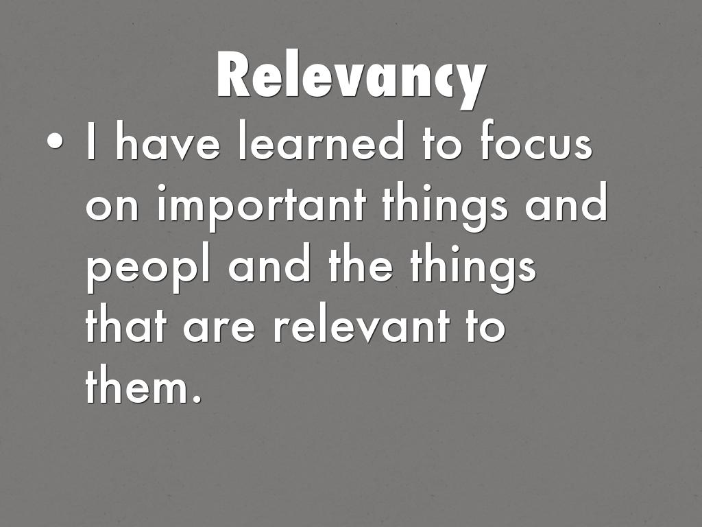 • I have learned to focus on important things and peopl and the things that are relevant to them.