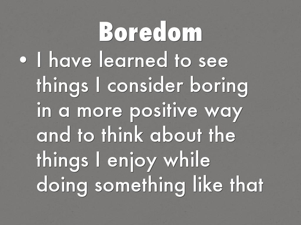 • I have learned to see things I consider boring in a more positive way and to think about the things I enjoy while doing something like that