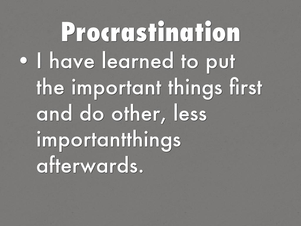 • I have learned to put the important things first and do other, less importantthings afterwards.