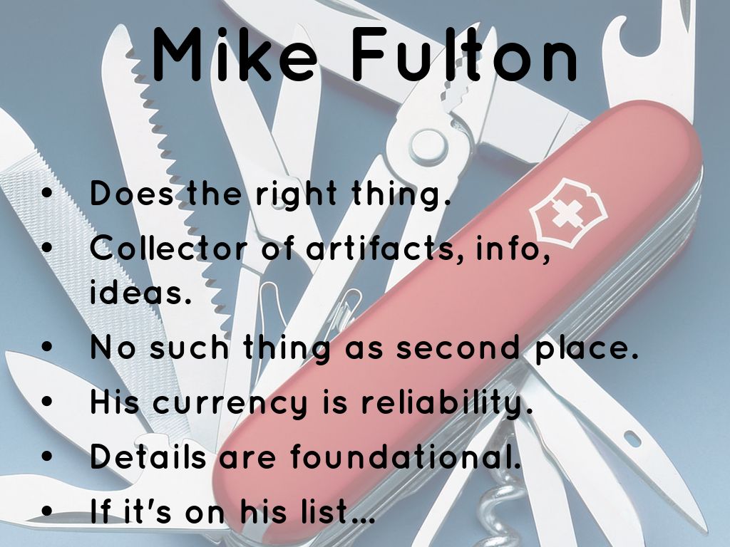 What Mike believes, is who Mike is. Builds trust, and questions others motives, if he doesn't agree. And doesn't easily give up