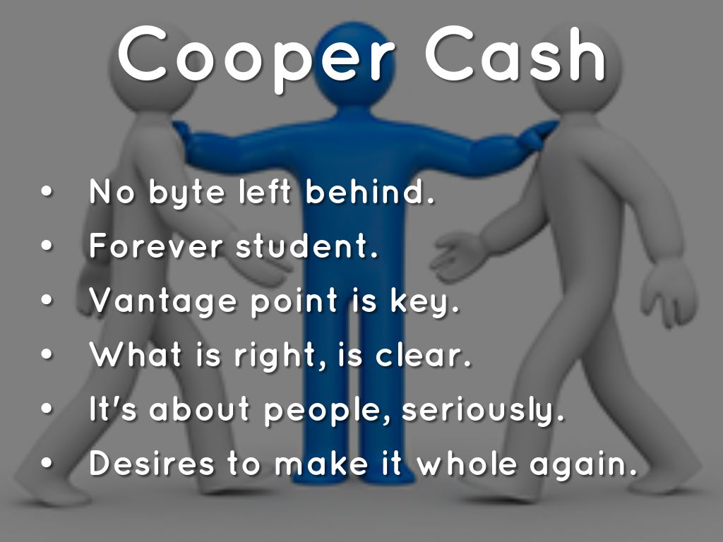 Life is not lived alone for Cooper, it's lived with others. Trust and dependability is built on people, not artificial means