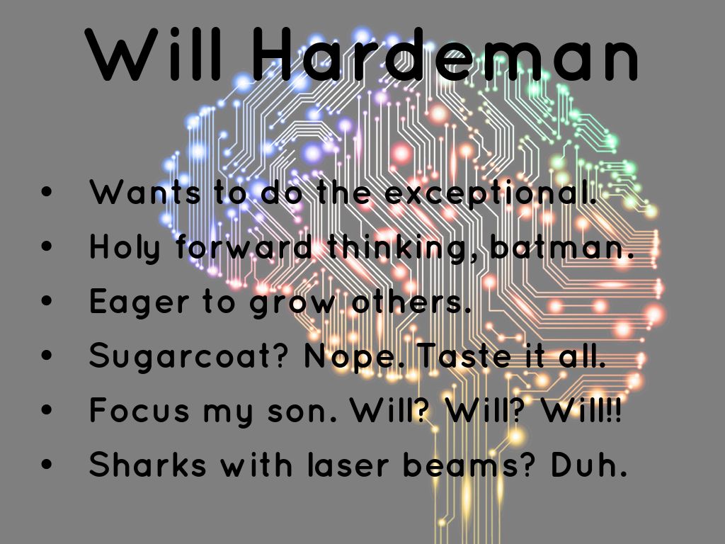 Comfortable with complex things. Devil is in the details. Spots flaws in my arguments! I look to him for that feedback.