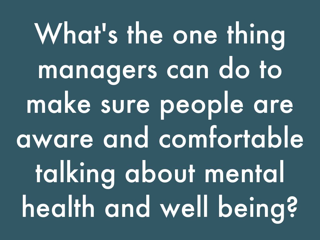 What's the one thing managers can do to make sure people are aware and comfortable talking about mental health and well being?