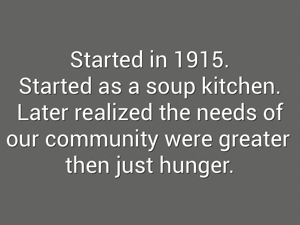 Later realized the needs of our community were greater then just hunger.