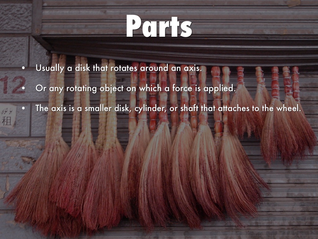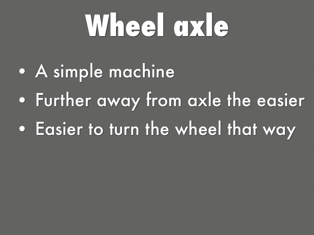 The axis is a smaller disk, cylinder, or shaft that attaches to the wheel.