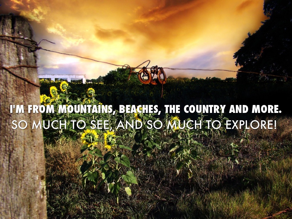 I'M FROM MOUNTAINS, BEACHES, THE COUNTRY AND MORE.