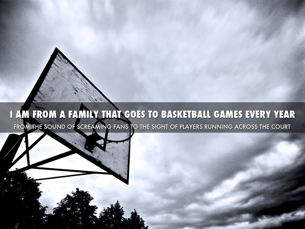 I AM FROM A FAMILY THAT GOES TO BASKETBALL GAMES EVERY YEAR