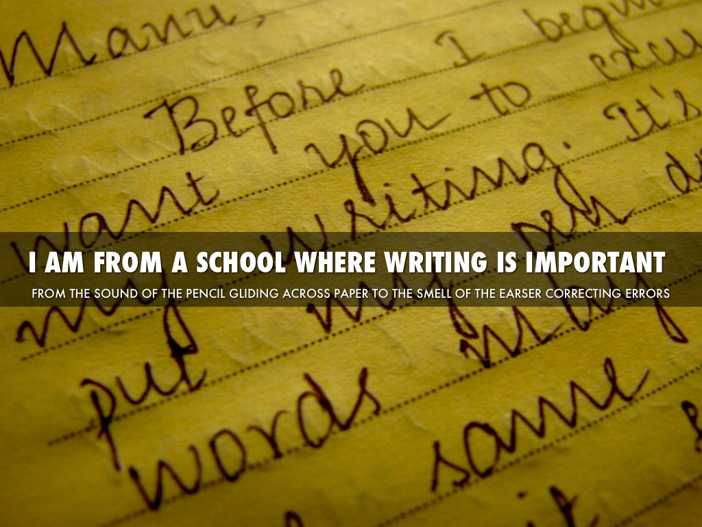 I AM FROM A SCHOOL WHERE WRITING IS IMPORTANT