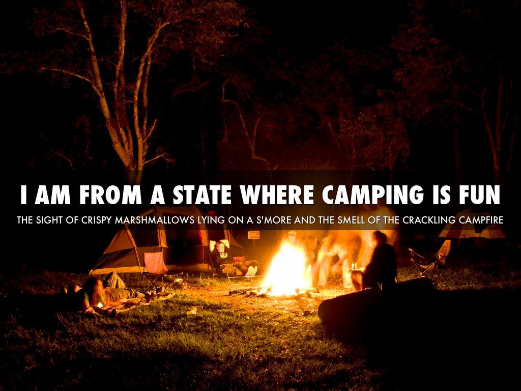 THE SIGHT OF CRISPY MARSHMALLOWS LYING ON A S'MORE AND THE SMELL OF THE CRACKLING CAMPFIRE