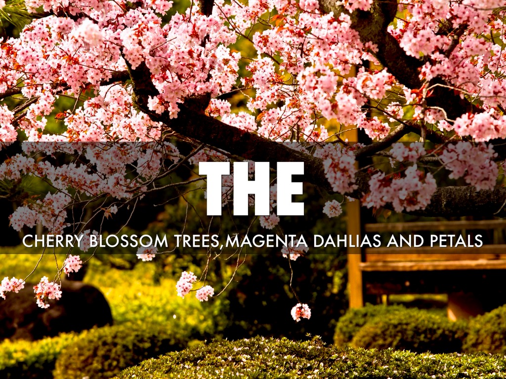 CHERRY BLOSSOM TREES,MAGENTA DAHLIAS AND PETALS