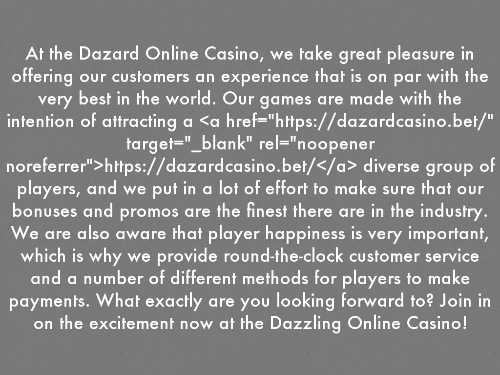 • The Dazard Online Casino is a fantastic location in which to enjoy all of your favorite casino games; yet, you are unsure whether or not it is the very greatest location in which to play.
