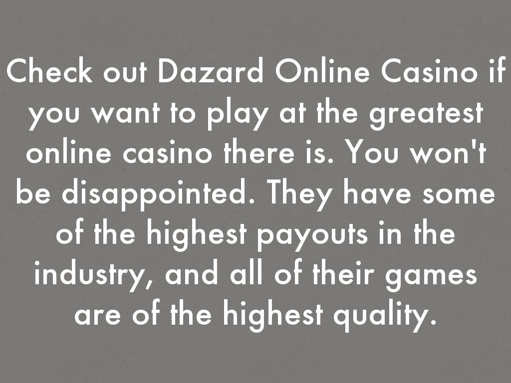 Check out Dazard Online Casino if you want to play at the greatest online casino there is. You won't be disappointed. They have some of the highest payouts in the industry, and all of their games are of the highest quality.