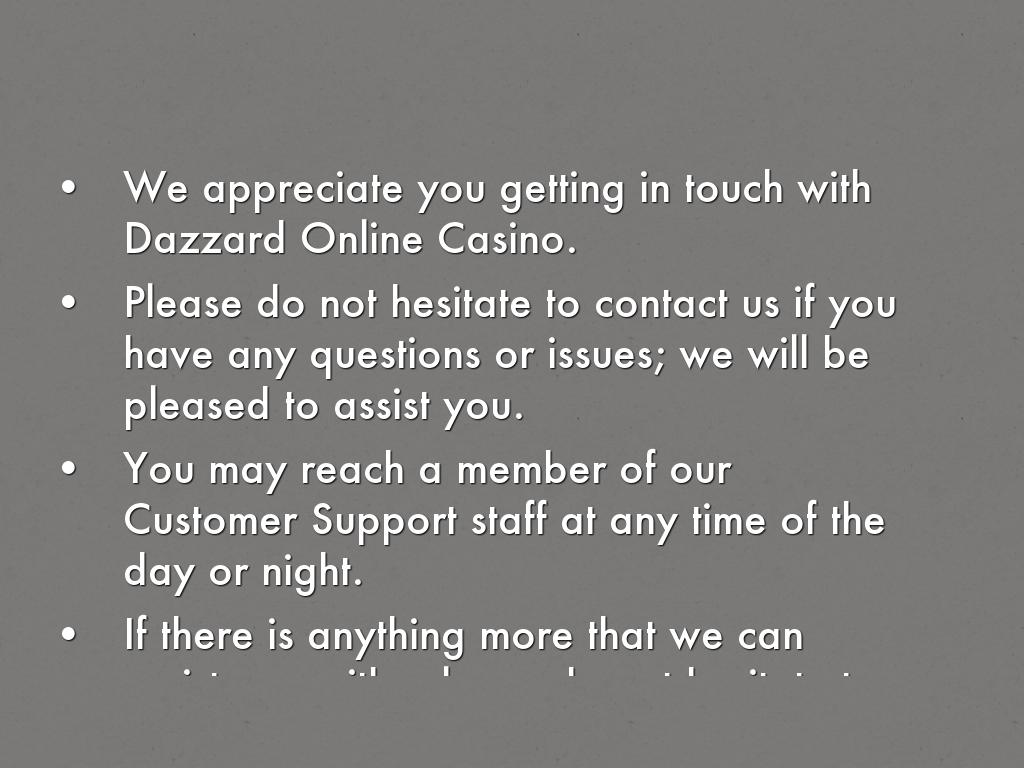 • We appreciate you getting in touch with Dazzard Online Casino.