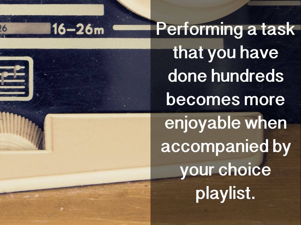 Performing a task that you have done hundreds becomes more enjoyable when accompanied by your choice playlist.