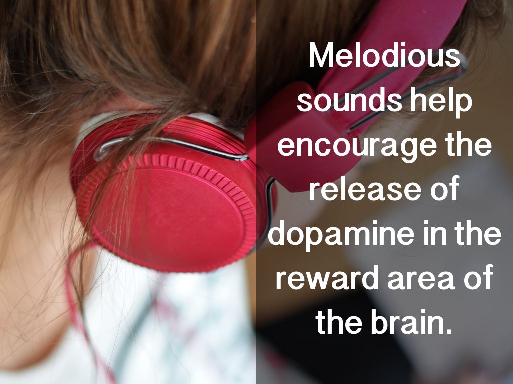 Melodious sounds help encourage the release of dopamine in the reward area of the brain.