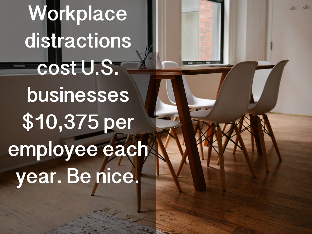 Workplace distractions cost U.S. businesses $10,375 per employee each year. Be nice.