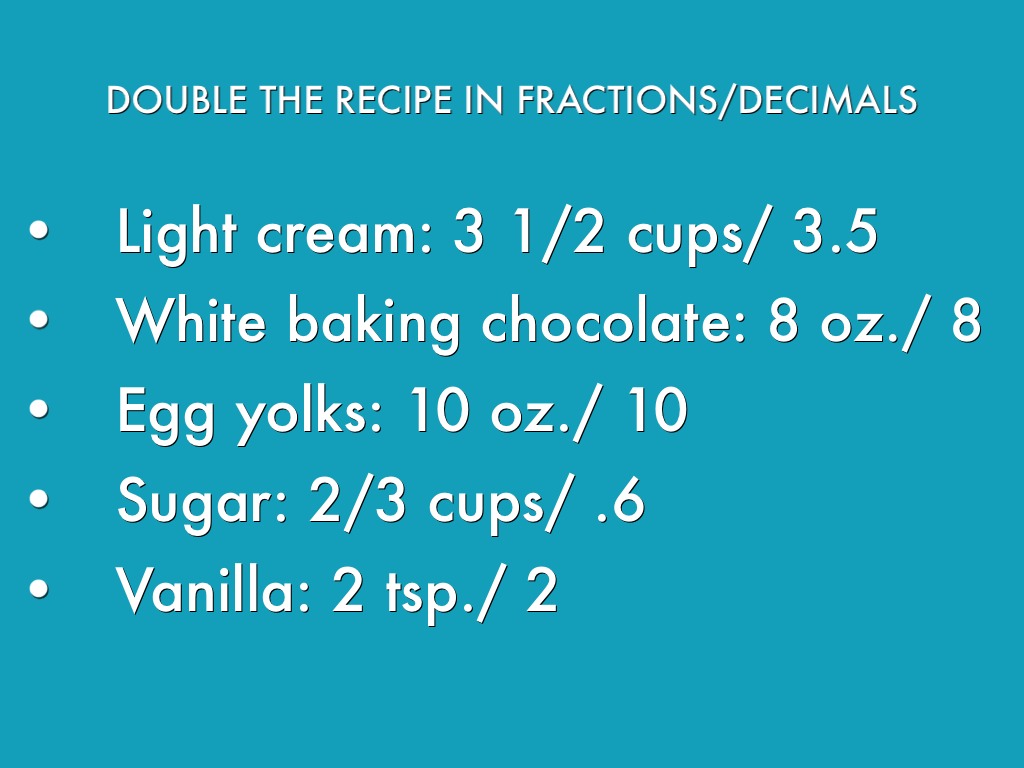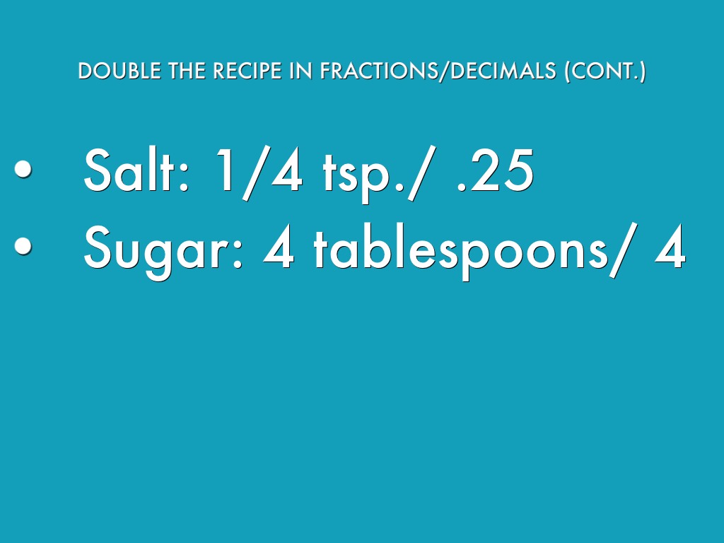 DOUBLE THE RECIPE IN FRACTIONS/DECIMALS (CONT.)