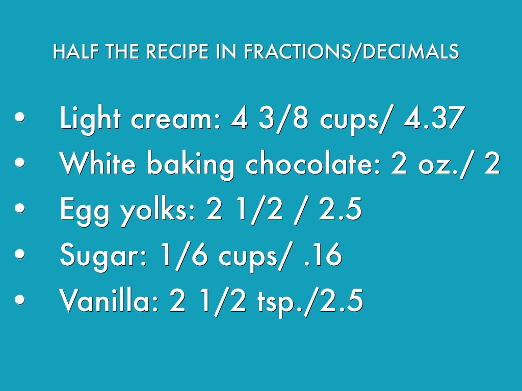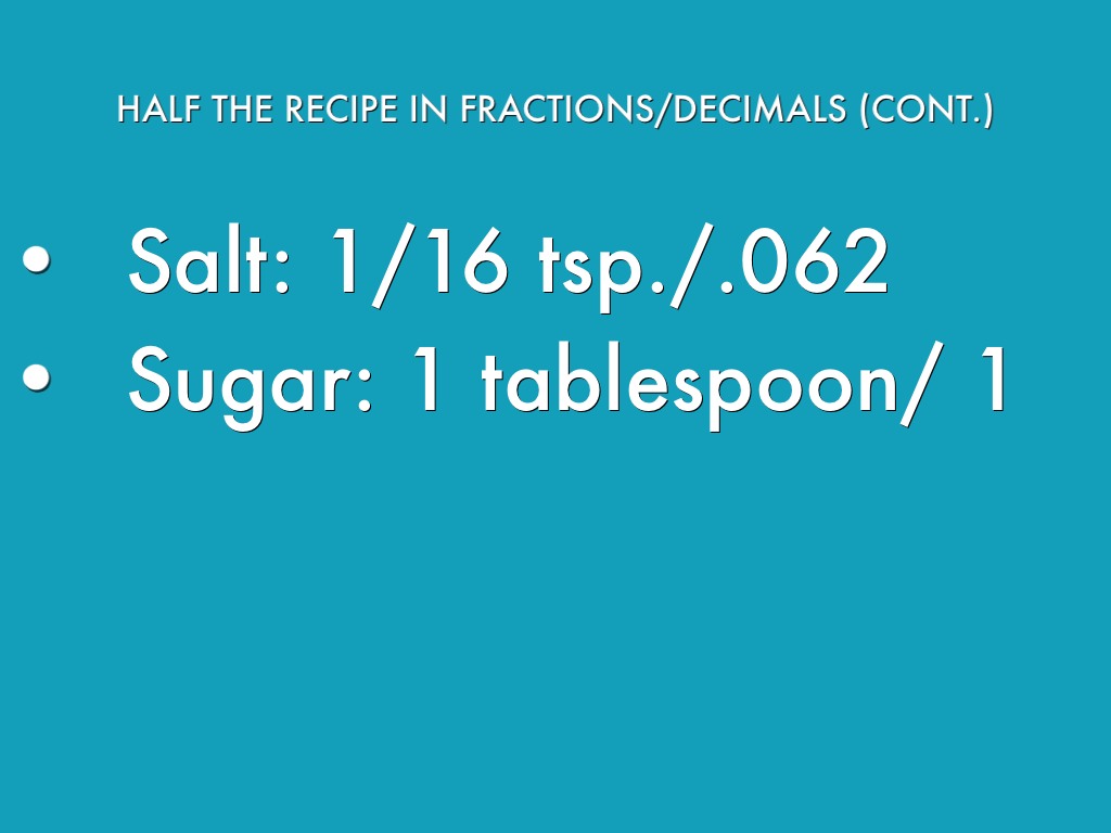 HALF THE RECIPE IN FRACTIONS/DECIMALS (CONT.)