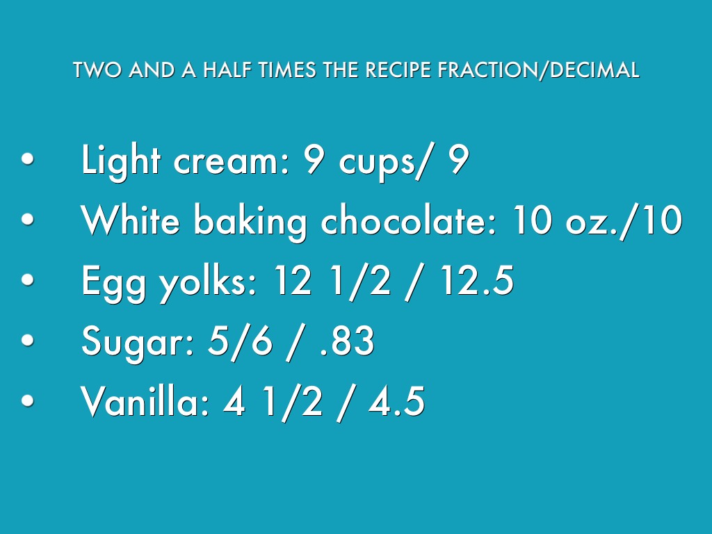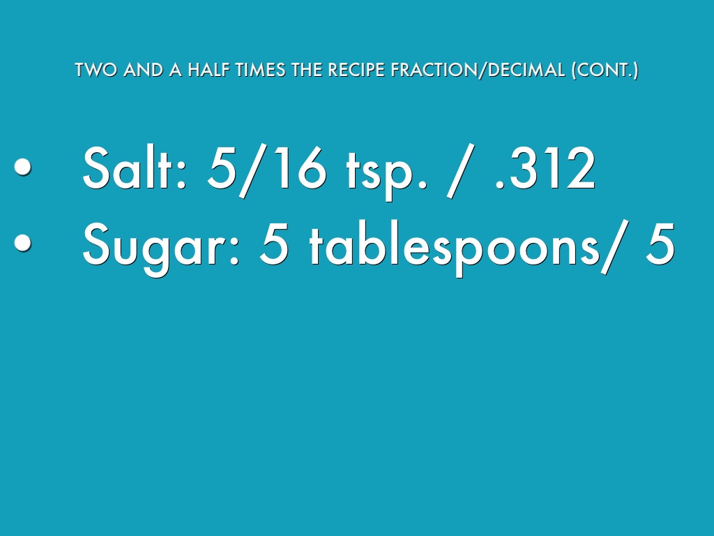 TWO AND A HALF TIMES THE RECIPE FRACTION/DECIMAL