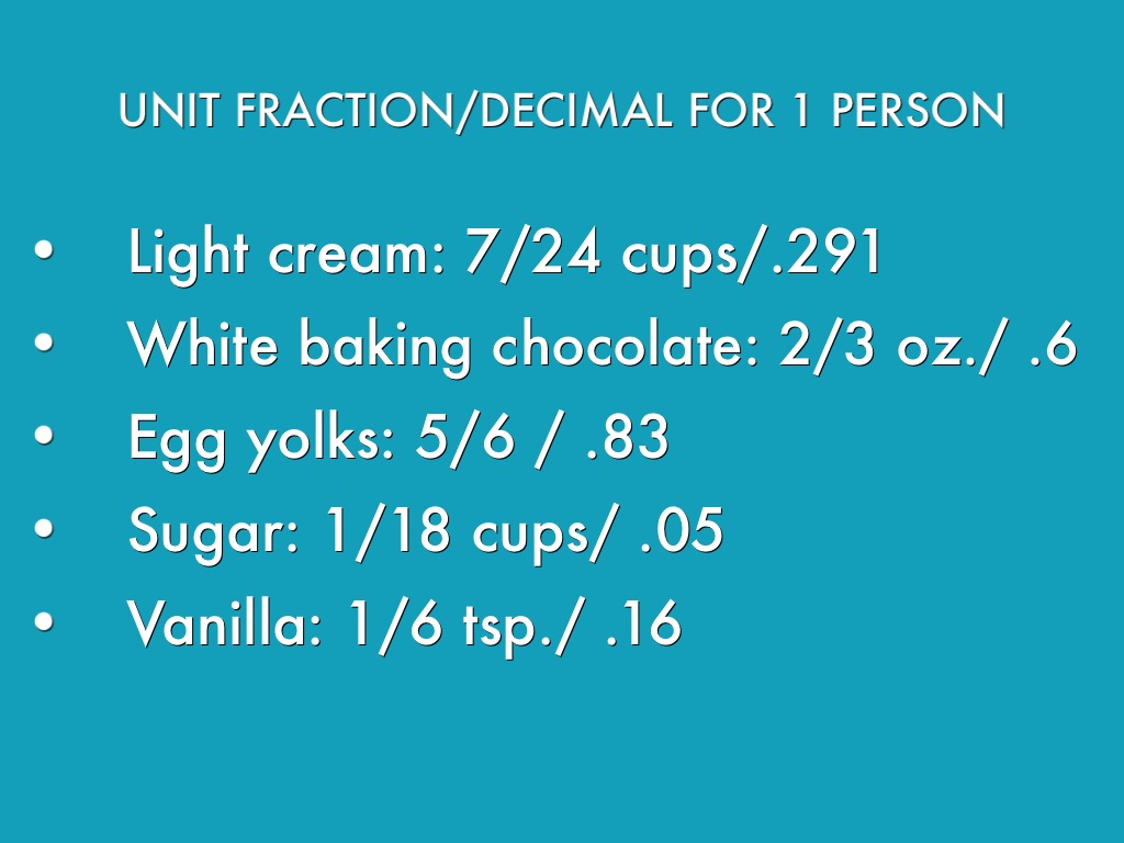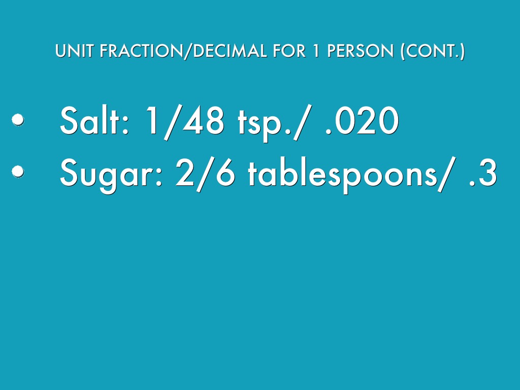 UNIT FRACTION/DECIMAL FOR 1 PERSON (CONT.)