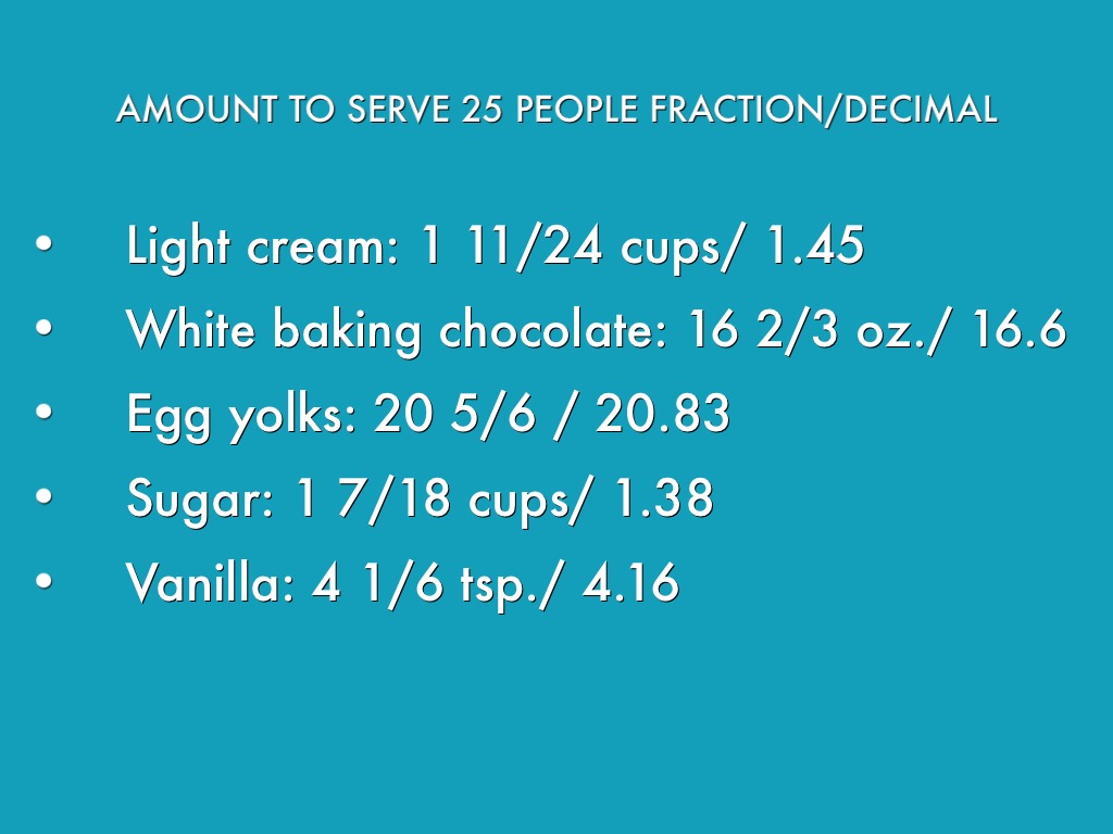 AMOUNT TO SERVE 25 PEOPLE FRACTION/DECIMAL
