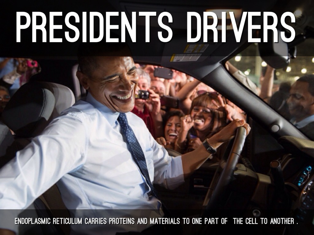 The endoplasmic reticulum are like the presidents drivers because they carry proteins with them to one part of the cell to the other. The presidents drivers do that by driving the president to different parts of the state.