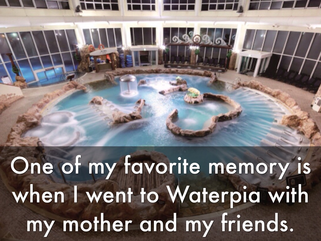 One of my favorite memory is when I went to Waterpia with my mother and my friends.