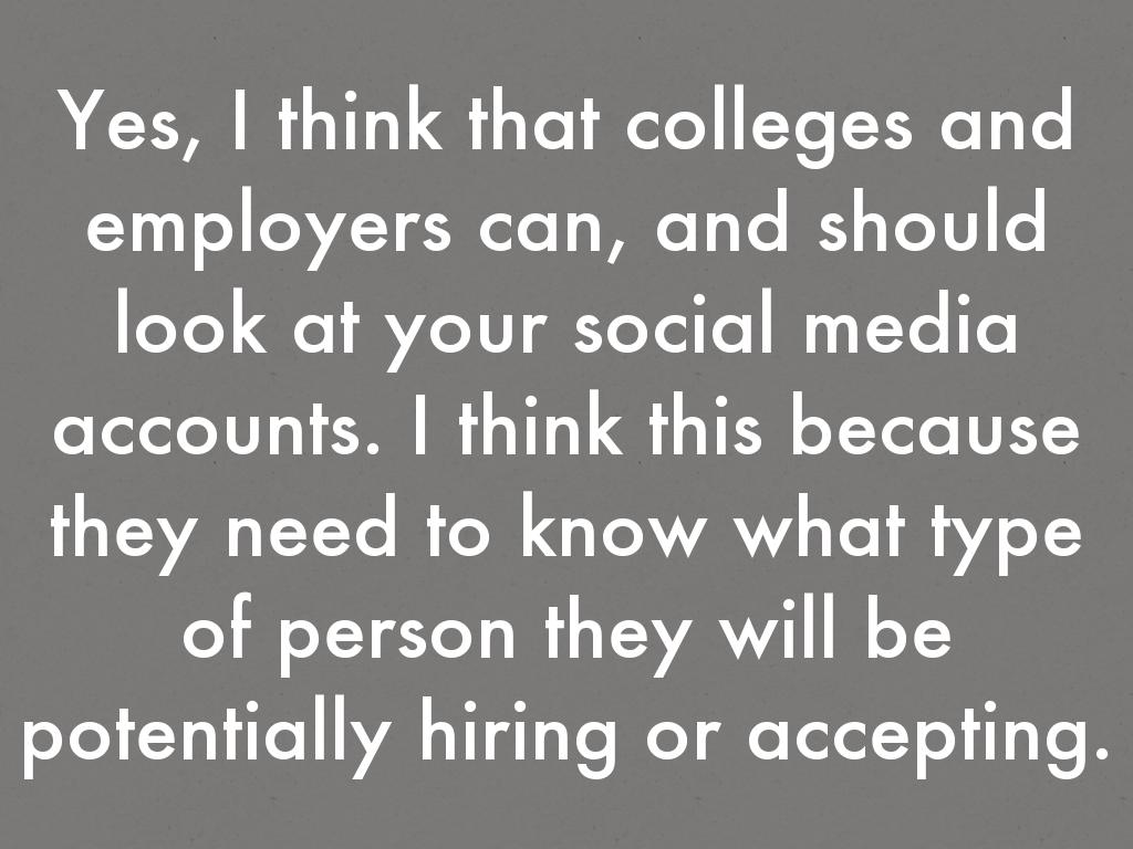 Yes, I think that colleges and employers can, and should look at your social media accounts. I think this because they need to know what type of person they will be potentially hiring or accepting.