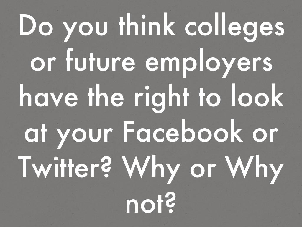 Do you think colleges or future employers have the right to look at your Facebook or Twitter? Why or Why not?