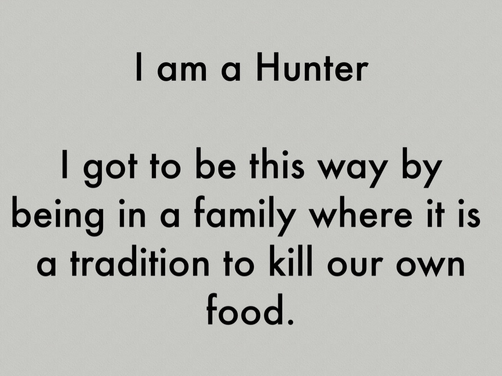 I got to be this way by being in a family where it is a tradition to kill our own food.