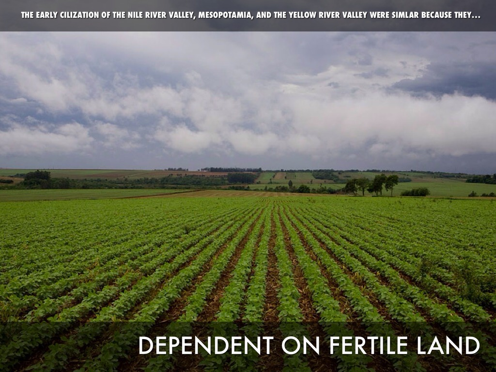 THE EARLY CILIZATION OF THE NILE RIVER VALLEY, MESOPOTAMIA, AND THE YELLOW RIVER VALLEY WERE SIMLAR BECAUSE THEY WERE-