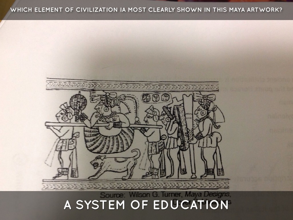 WHICH ELEMENT OF CIVILIZATION IA MOST CLEARLY SHOWN IN THIS MAYA ARTWORK?