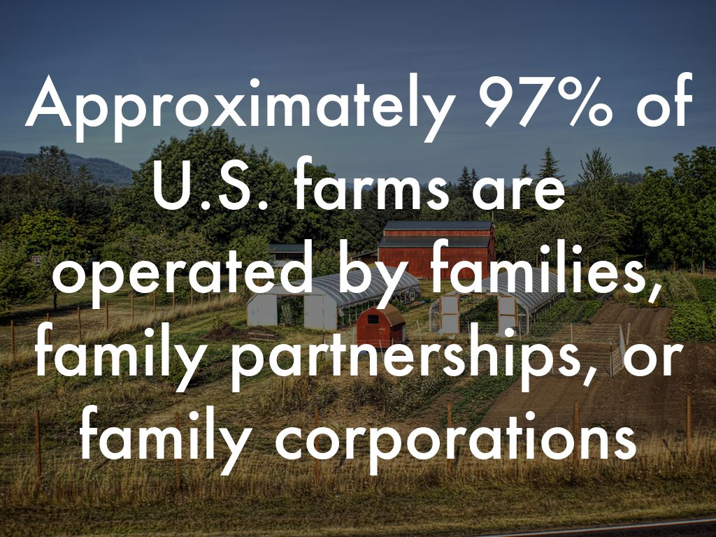 Approximately 97% of U.S. farms are operated by families, family partnerships, or family corporations