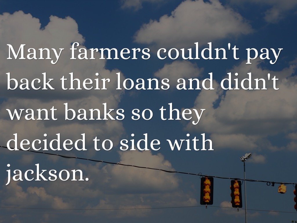 Many farmers couldn't pay back their loans and didn't want banks so they decided to side with jackson.