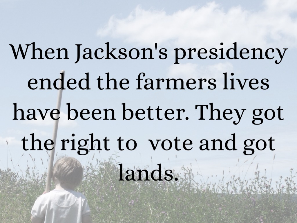 When Jackson's presidency ended the farmers lives have been better. They got the right to vote and got lands.