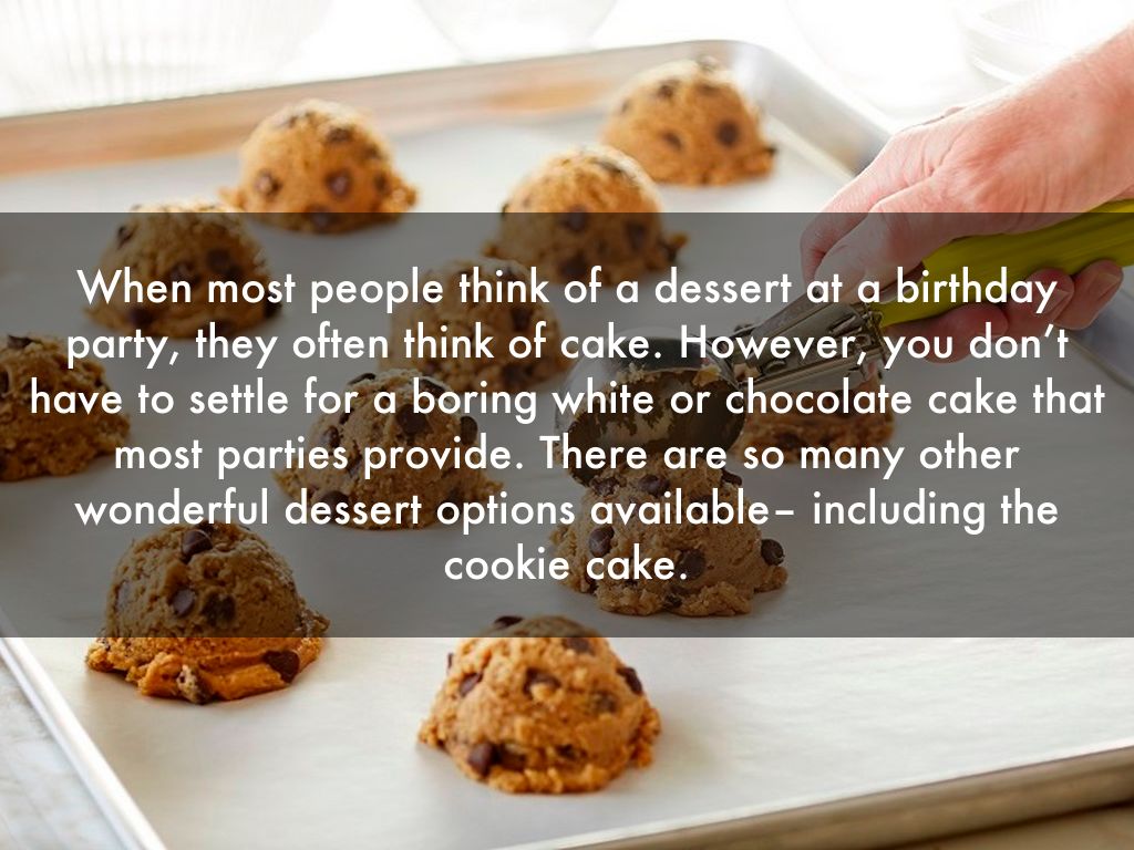 When most people think of a dessert at a birthday party, they often think of cake. However, you don’t have to settle for a boring white or chocolate cake that most parties provide. There are so many other wonderful dessert options available– including the cookie cake.