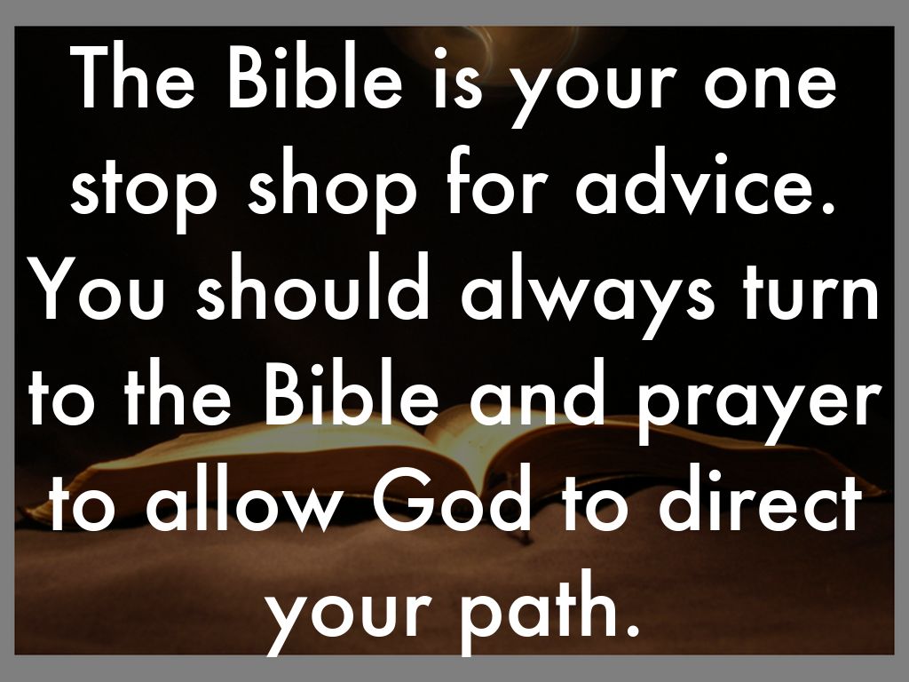 The Bible is your one stop shop for advice. You should always turn to the Bible and prayer to allow God to direct your path.