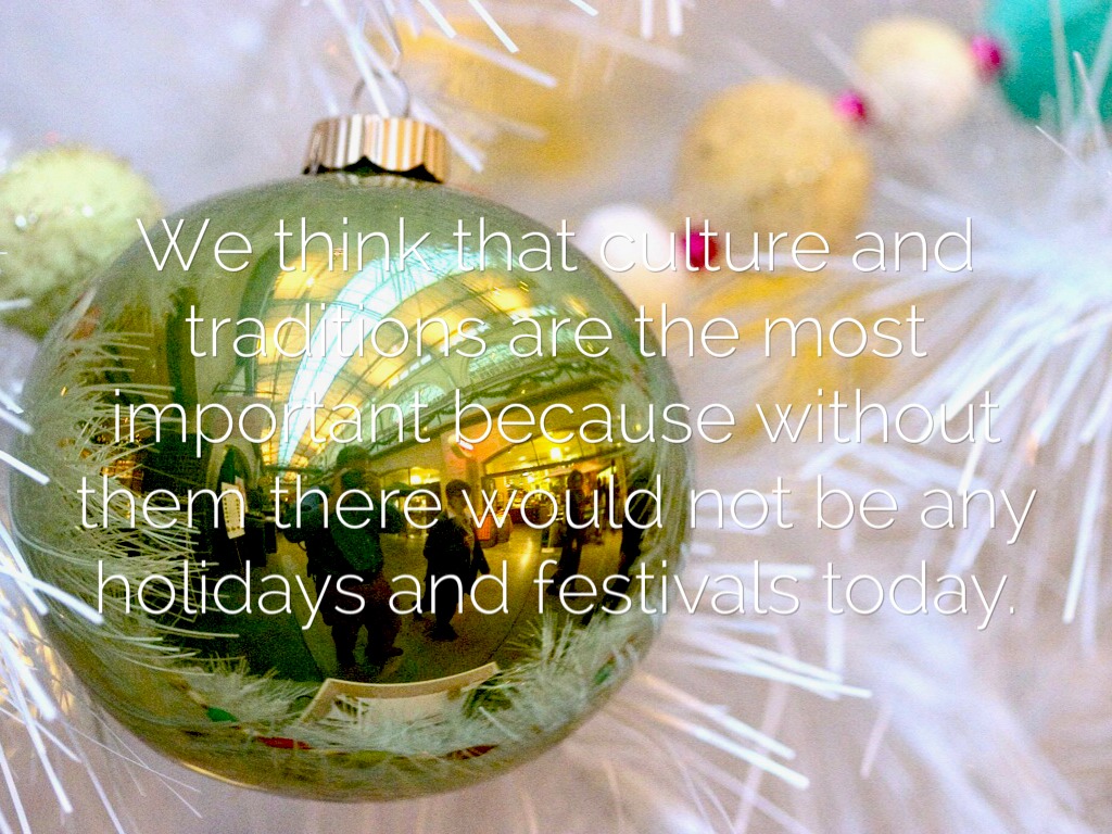 We think that culture and traditions are the most important because without them there would not be any holidays and festivals today.