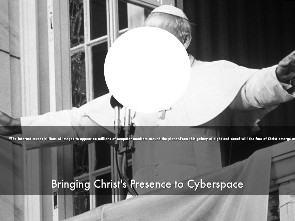 “The Internet causes billions of images to appear on millions of computer monitors around the planet.From this galaxy of sight and sound will the face of Christ emerge and the voice of Christ be heard?”- Pope John Paul IIWorld Communications Day 2002