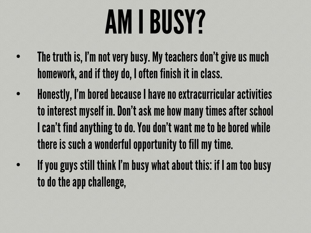 • If you guys still think I'm busy what about this: if I am too busy to do the app challenge,