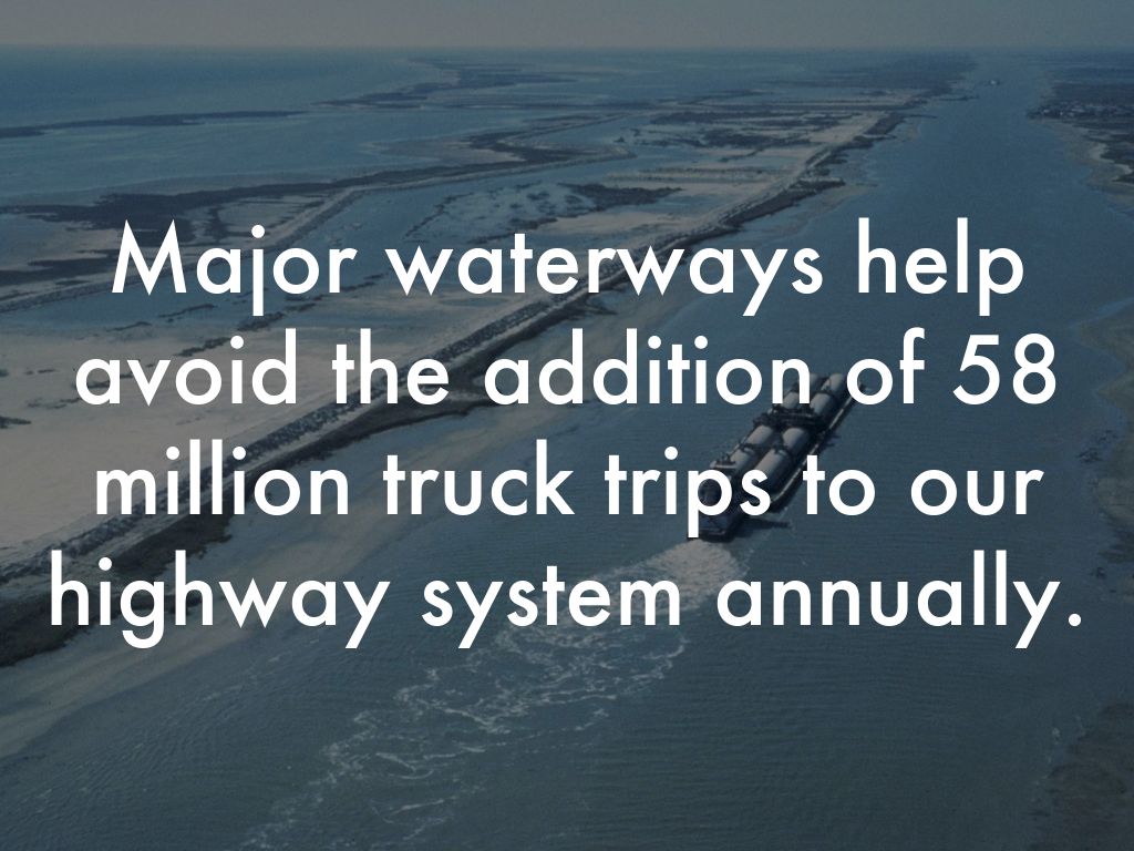 Major waterways help avoid the addition of 58 million truck trips to our highway system annually.